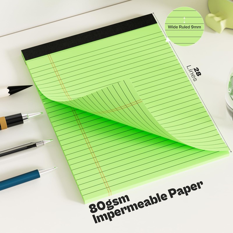 - Wide Ruled Design — Our writing pads feature wide ruled with 11/32 inch line spacing for those with larger handwriting or for easier reading and transcribing. This spacious layout ensures that your notes are clear and neat