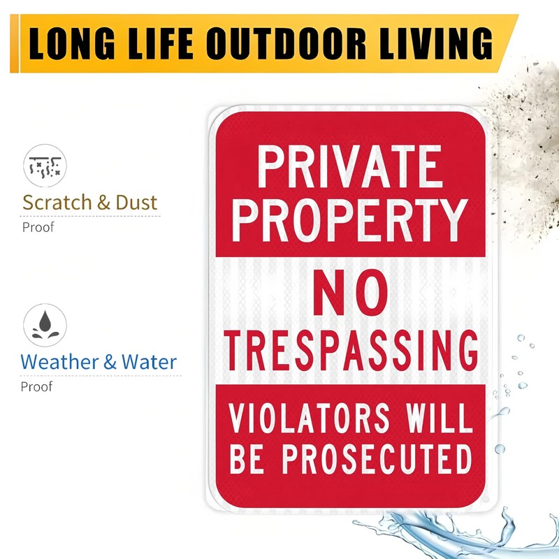 - đź”’ Thick Reflective Private Property Sign, Made of high quality thick rust-proof aluminum, this "Private Property - No Trespassing" sign is waterproof, windproof, and sunproof. Strong and durable, suitable for long-term outdoor use in any environment.