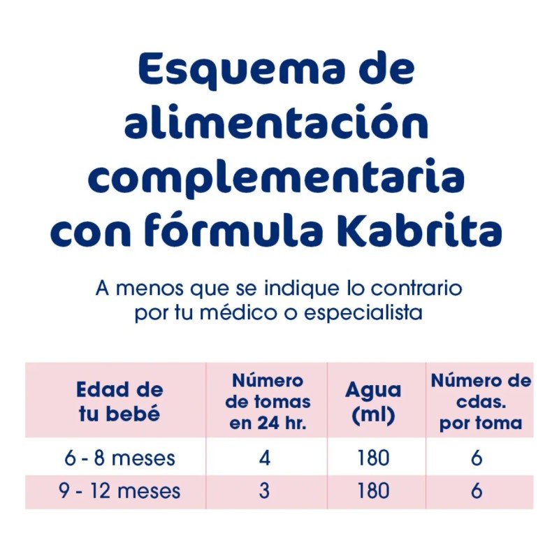 - FÓRMULA DE CONTINUIDAD: Kabrita Etapa 2 es adecuada para bebés desde los 6 hasta los 12 meses, proporcionando una opción nutritiva y segura cuando la lactancia materna no es posible ó para complementar la lactancia natural.