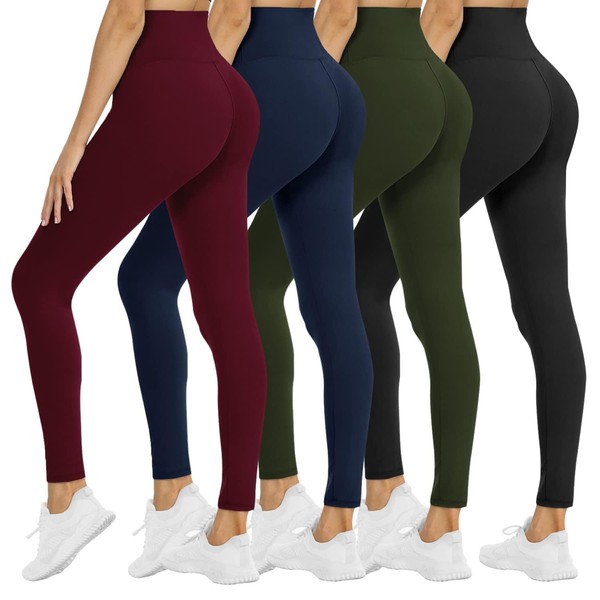 4 Pack Leggings for Women - High Waisted Tummy Control Soft No See-Through Bl...