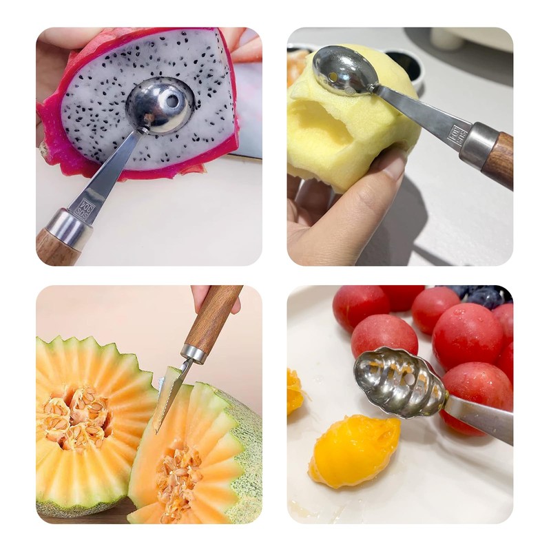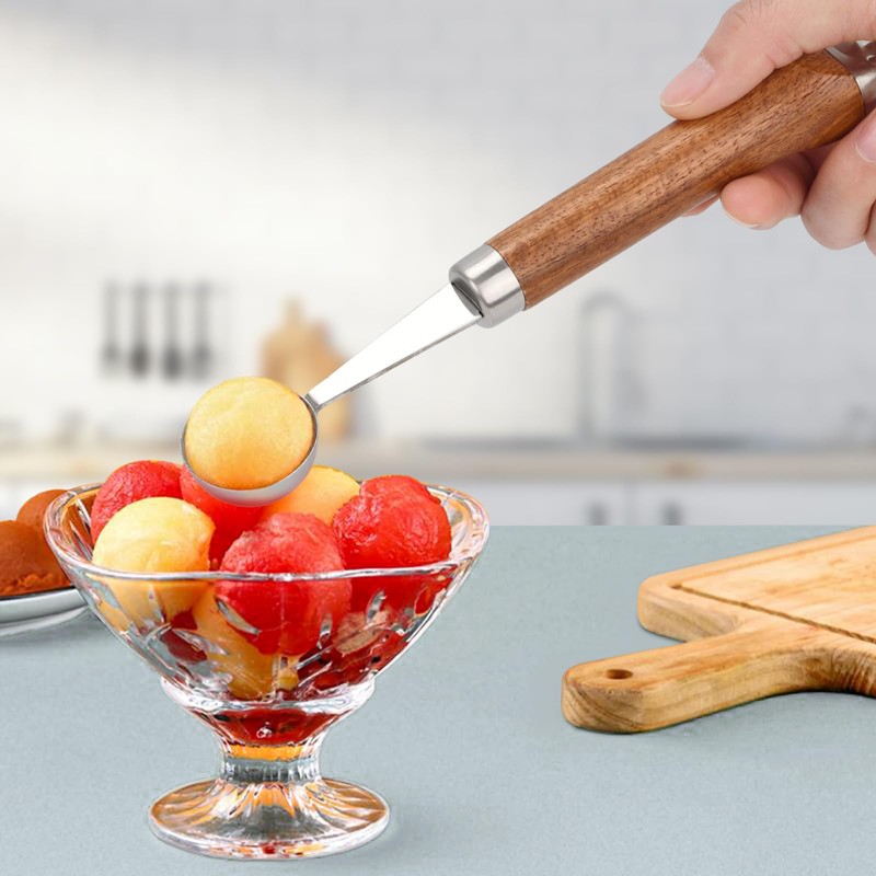 • ❦Food Grade Material,Safe and Assured:Fruit scoop made of food grade 304 stainless steel,safe to use.The wooden handle design is ergonomic,comfortable to hold and easy to use