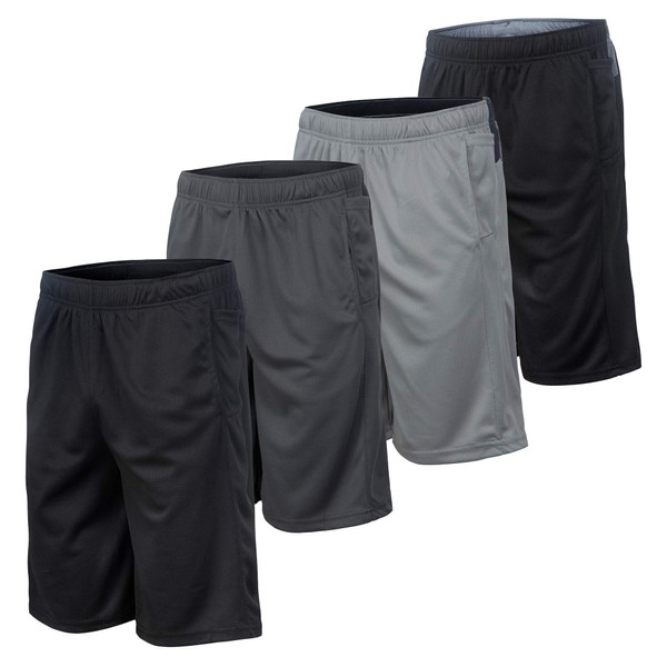 4 Pack: Men's Dry-Fit Sweat Resistant Active Athletic Performance Shorts