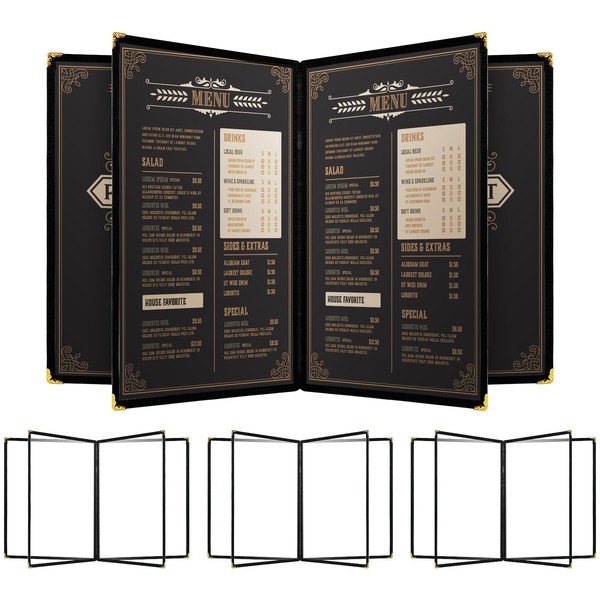 4 Pack Menu Covers 8.5 x 11 Inch Menu Holders 4 Page 8 View Restaurant Menu Covers Fits A4 Size Paper Menu Book Menu Sleeves for Restaurant, Kitchen, Drink