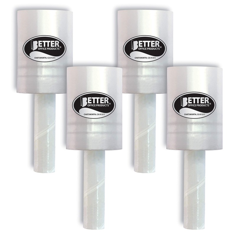Better Office Products 4 Pack Mini Stretch Wrap with Easy Grip Handle, Self-Dispensing, 5 in x 1000 ft Per Roll, 80 Gauge, Mini Shrink Wrap, Industrial Film, for Moving and Shipping, 4 Pack