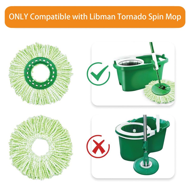 - For Libman: The mop head replacement is ONLY compatible with the Libman Tornado Spin Mop,NOT for Libman Spin Mop.Includes: 4 Pack Microfiber Mop Heads Without Handle.