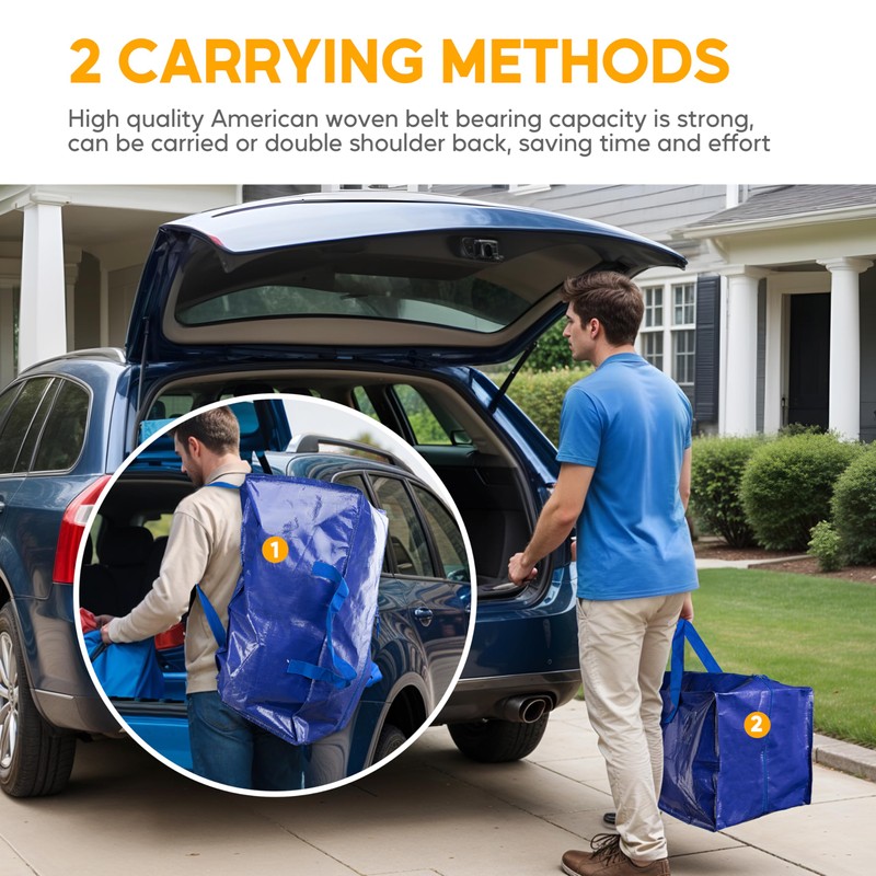 4 Pack Oversized Heavy Duty Moving Bags with Backpack Straps, Strong Handles & Zippers, Extra Large Storage Tote Moving Boxes for Space Saving, Blue