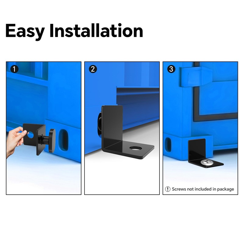 - Easy Installation and Disassembly: Simple to install, just insert the shipping container locks into the container holes, rotate it 90 degrees to align with the ground, and lock it with screws. Note: Screws are not included.