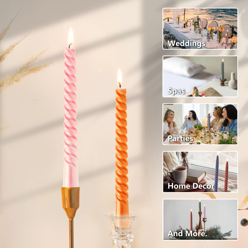 - Versatile for Any Decor Setting: Whether used on dining tables, mantels, fireplaces, or in candle holders, these elegant spiral taper candles complement both modern and classic interiors — perfect for weddings, romantic dinners, holidays, or everyday home styling.