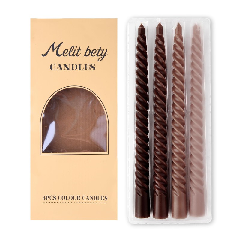4 Pack Spiral Gradient Taper Candles – Long Pole Unscented Candles, Smokeless & Dripless, Gift Boxed for Wedding, Christmas, Table or Mantle Decor (Brown)
