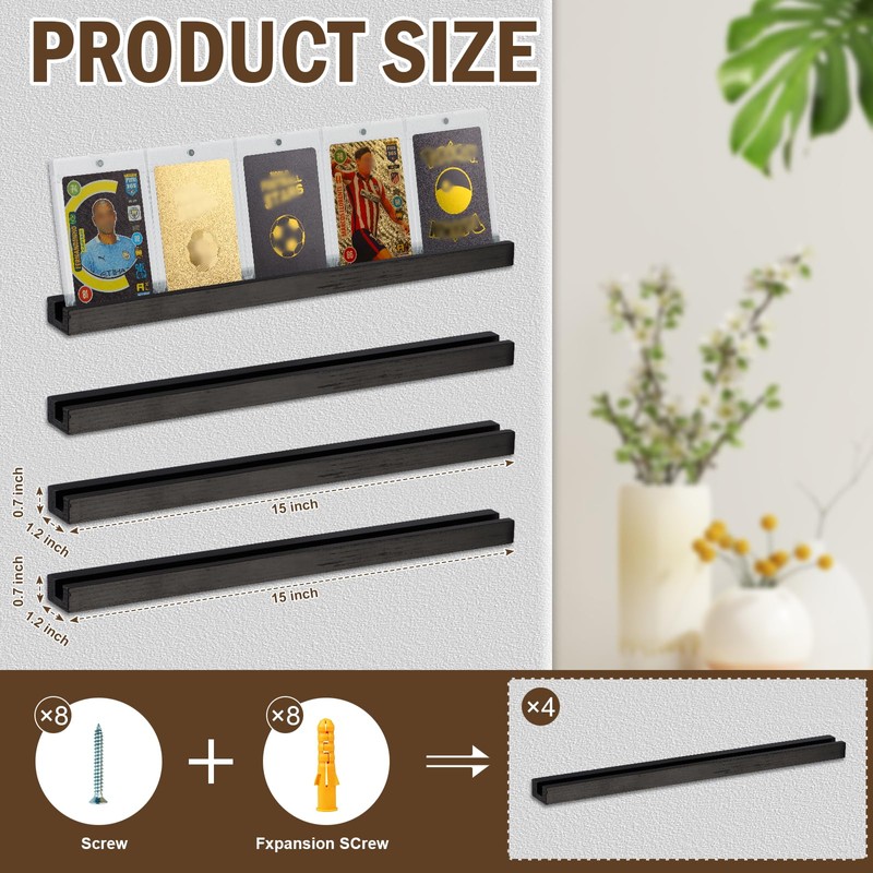 4 Pack Sports Card Display Stand Wood Trading Card Rack 15*1.2*0.7 Inch Graded Card Display Shelf Baseball Card Frame Wall Display Toploader Card Holder Display for Home Shop (No Card) (Black)