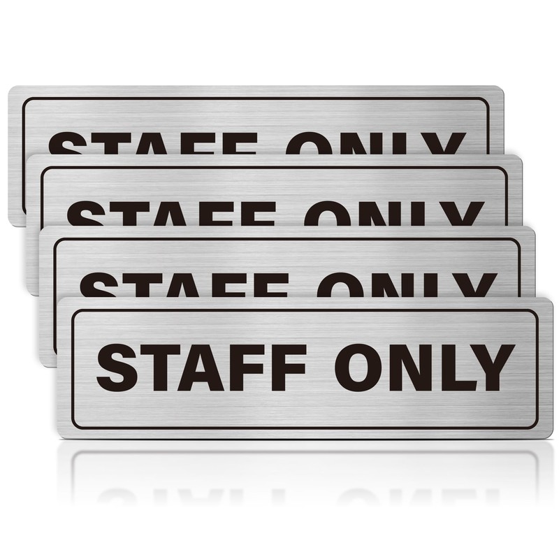 4 Pack Staff Only Sign - Employees Only Sign, Business Signs for Store, Hotel, Restaurant, Easy Installation with Double Sided Tapes, Brushed Aluminum, 7" × 2"