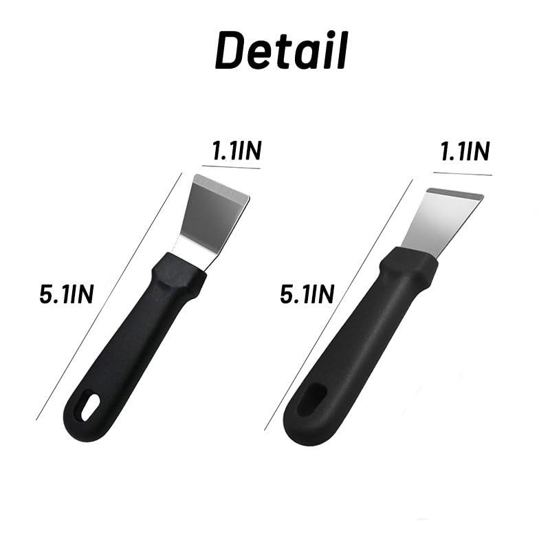 - 【High-Quality Stainless Steel Scraper】 The scraper is made of 1.3mm thick stainless steel, ensuring its durability and longevity. The beveled scraping edge improves cleaning efficiency, making it easy to remove stubborn dirts.