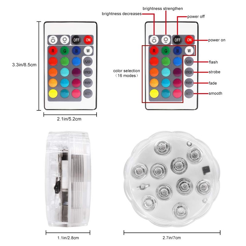 - WHAT YOU GET- 4 PCS Submersible LED lights and 4 PCS 24keys IR remote controllers, 12 months warranty and friendly customer Service.