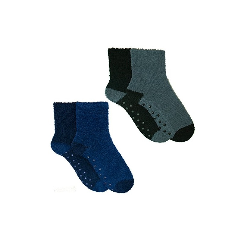 4 Pairs Mens Boys Cosy Socks Slipper Bed Super Soft Fluffy Fleece Warm Thermal Non Slip, UK 7-11, Black / Navy