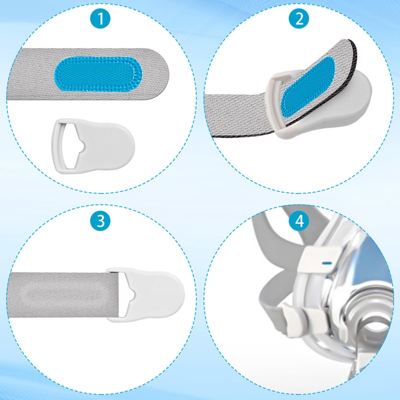 - Easy to install: you just need to thread the end of the mask headband through the headband clip and adjust the tightness.