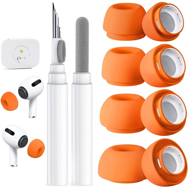 4 Pairs Replacement Ear Tips for AirPods Pro 2nd/1st Generation with Cleaner kit,Noise Reduction Holewith & Built-in dust Guard Screen (Orange)