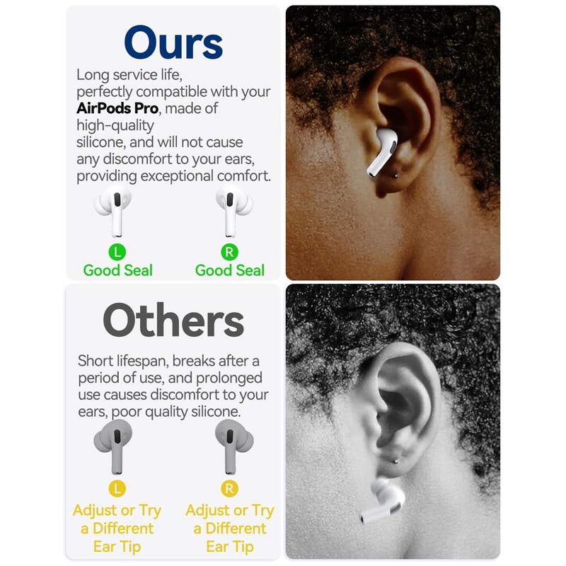 - Perfect Compatibility - Specifically designed replacement ear tips for AirPods Pro (1st and 2nd Gen) and the latest AirPods Pro 2nd Gen with USB-C Charging Case (2023). Note: For use with genuine Apple devices only.