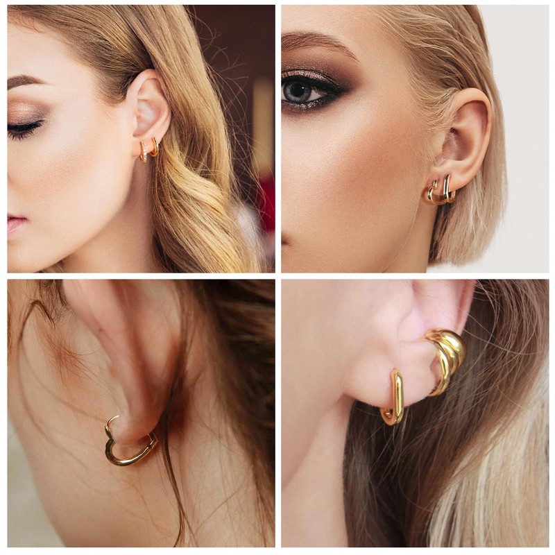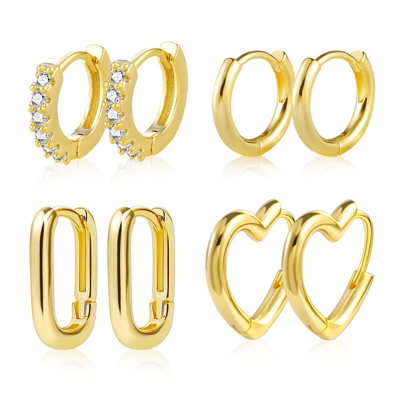 - 【Multi Styles of Small Huggies】Package includes 4 different styles of mini gold huggie earrings, including oval, heart, cubic zirconia, and polished hoops, enough to meet your dressing demand for outfits.