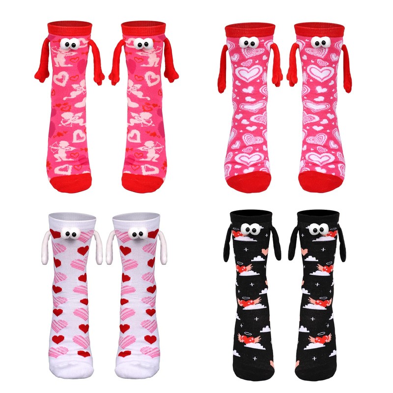 - Product Design: These heart print socks are designed with two 3D eyes and magnetic suction hands. They are very fashionable and cute. (These socks need to be hand washed)