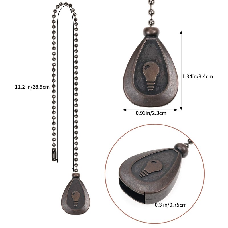 - Pull Chain Dimension: Teardrop-shaped bottom size- 1.34 x 0.91 inch/ 3.4 x 2.3cm, thickness- 0.3 inch/ 0.75cm; chain length- 11.2 inch/ 28.5cm. Please allow 0.1 inch mistake due to manual measuring.