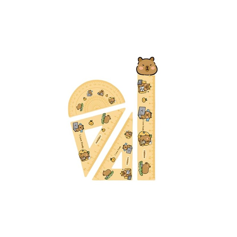 - 4Pcs Ruler Set: 4 pieces of math geometry tools with cute capybara patterns, including a 15cm straight ruler, 2 pieces triangle rulers (30/60 and 45/90 degrees) and a protractor, complete set to meet the needs of basic geometry work.