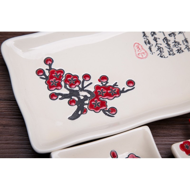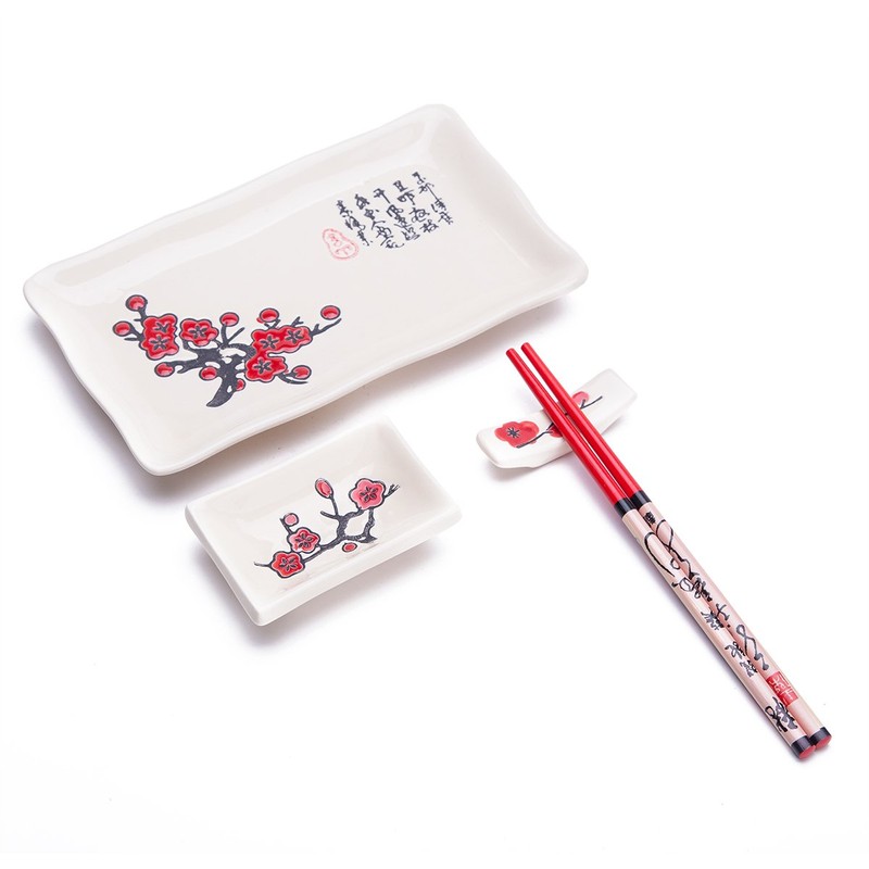 4 Pcs Japanese Sushi Plate Dinnerware Set White With Plum Blossom Design