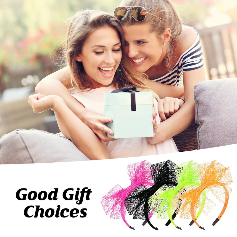 - UNIQUE LACE BOW DESIGN: The highlight of this headband is its delicate 80s style lace bow design. A neon lace bow delicately wraps around the headband, creating a fresh and glamorous look that will stand out in any crowd. Big fluffy bows add a touch of cuteness and elegance to your hair, making you look eye-catching and charming.