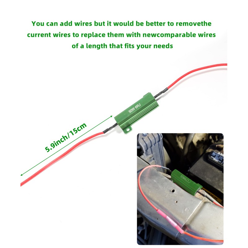 4 PCS Load Resistor,LED Turn Signal Resistor Flasher Adaptor with Wire&Clip,50W 6ohm LED Load Resistors Conversion Kit Fix LED Bulb Hyper Flash Turn Signal Light Bulb Fast Blink Error Code (2 Green)