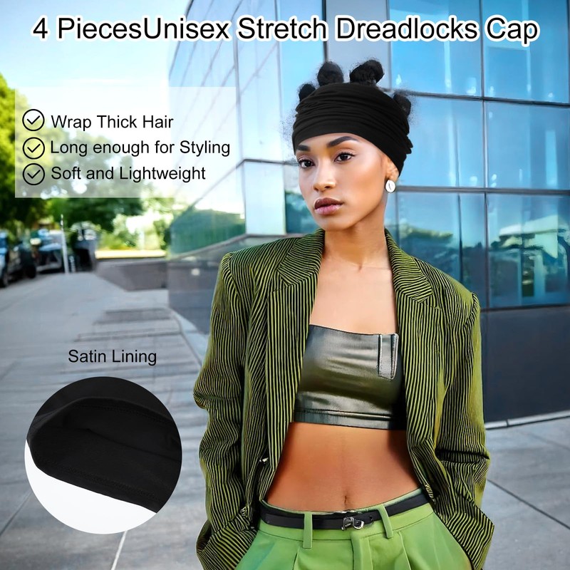 4 Pcs Loc Sock Dread Cap for Men, Elastic Loc Caps Dreadlock Cap Dreadlock Accessories Tube Bands for Women, Long & Short Braid Cover for Full Hair Black
