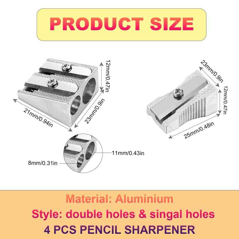 - 【4PCS Value Pack】 This set includes 2 double-hole and 2 single-hole pencil sharpeners, giving you versatile sharpening options for different pencil sizes. Perfect for use at home, school, or the office — a must-have pencil sharpener for kids and adults alike.