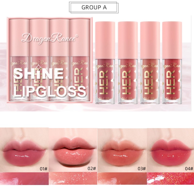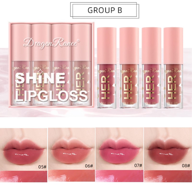 - 4 Pcs Lip Gloss Set: The moisturizing lip gloss has Delicate color, shiny lips, Overlaying with lipstick, gives you lips doubled glossy.(A and B sets are available)
