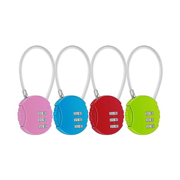 4 PCS Small Combination Cable Padlock, 3 Digit Padlocks with Code, Security Padlocks, Combination Lock for Cabinets, Suitcases