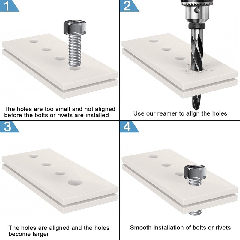 - 【Widely Used】Suitable for low-carbon steel, alloys, aluminum, wood, plastics, and fiberglass, making this reamer set a staple in bridge construction, steel manufacturing, automotive (trucks and trailers), and more. Note: Prior to reaming, ensure the presence of an existing hole or a pilot hole smaller than the reamer's size.