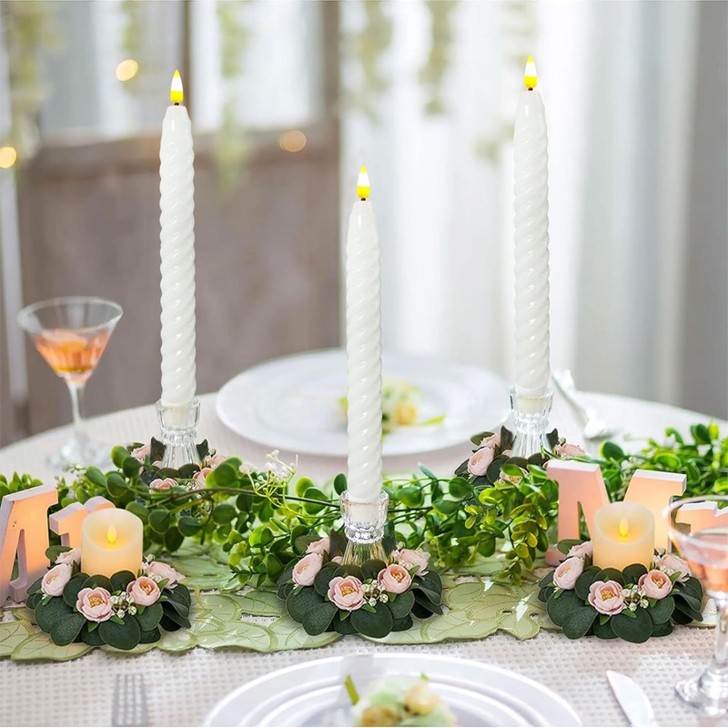 - 【Convenient Remote Control Timer】Control your Spiral flameless taper candles effortlessly with the10 key remote,no more struggling with hard-to-reach placements! Operate from 10-16 feet away, adjusting brightness, setting a 2/4/6/8-hour timer, or switching between flickering flame (for ambiance) and steady glow (for task lighting). Create the perfect mood for weddings, parties, or cozy nights,all without touching a single candle. No manual switching needed!