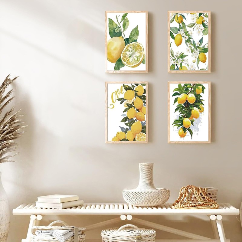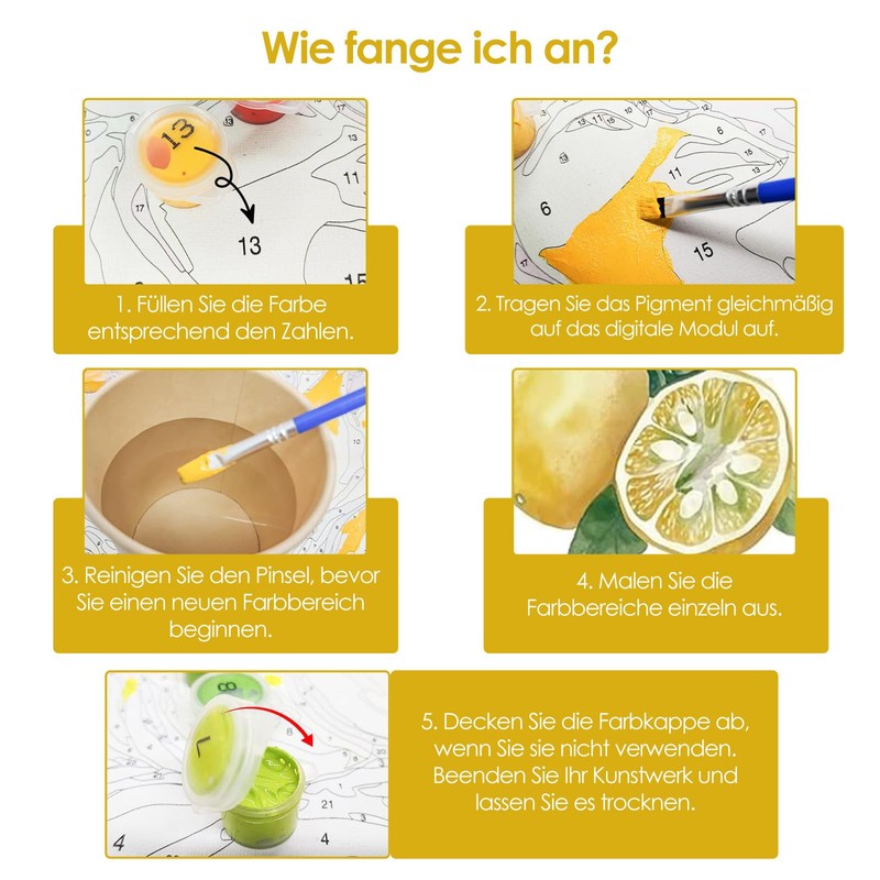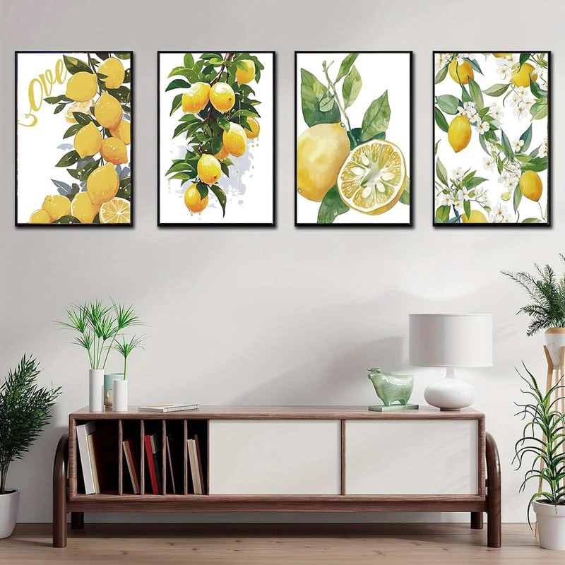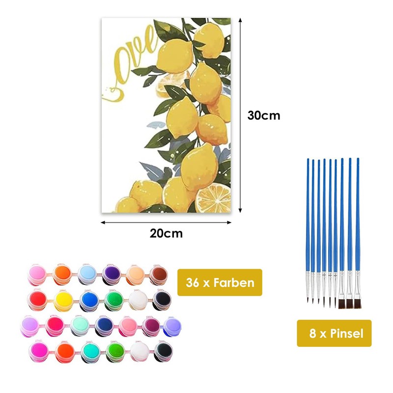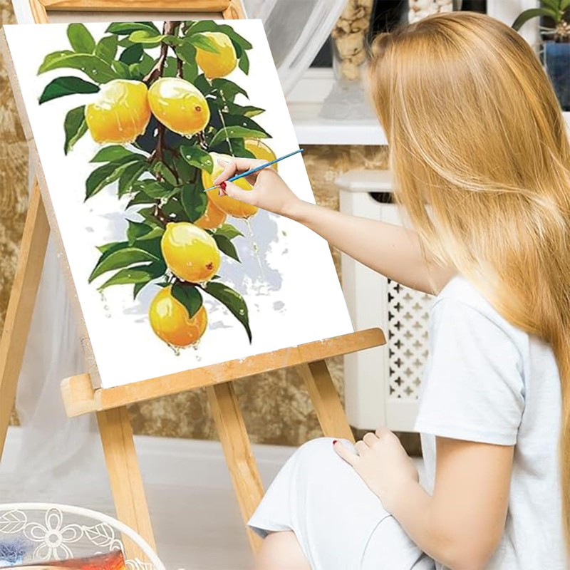 4-Piece Lemon Paint by Numbers Set, DIY Lemon Hand Painted Oil Painting Kit for Adults, Children and Beginners with Brush, Acrylic Pigment and Hanger, Kitchen, Home Decoration Gift, Unframed (20 x 30