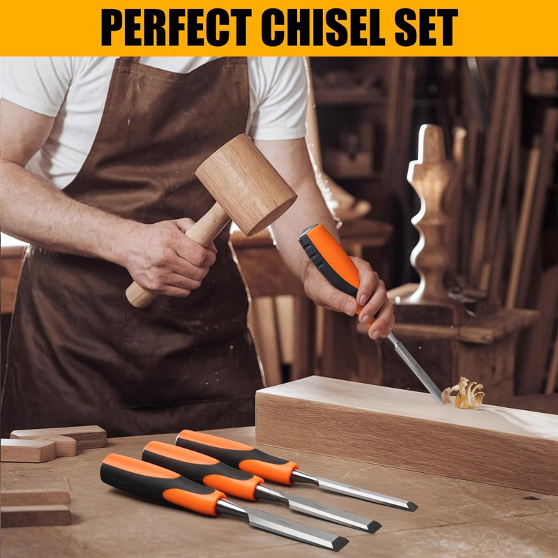 - Comfortable & Durable Handles: Designed with ergonomically shaped, high-impact plastic handles, these chisels provide superior grip and control, reducing hand strain during extended use. The steel hammer end adds extra durability, making it compatible with both metal hammers and wood mallets