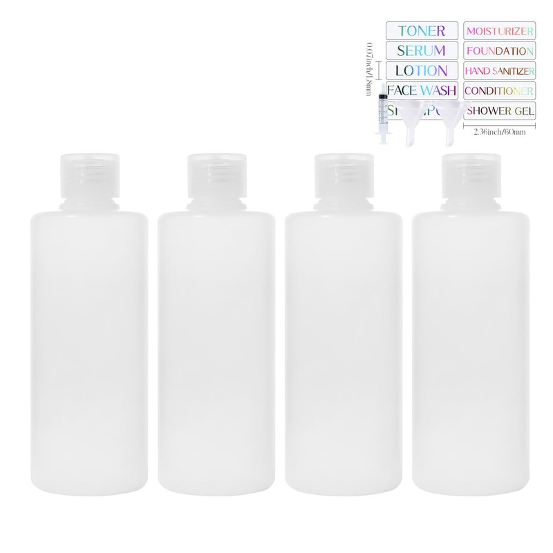 4 Pieces 200ml Travel Bottles Empty Refillable Squeeze Bottle with Flip Top Clear Plastic Bottles for Makeup Cosmetic Toiletries Bottles for Travel Shampoo Lotion