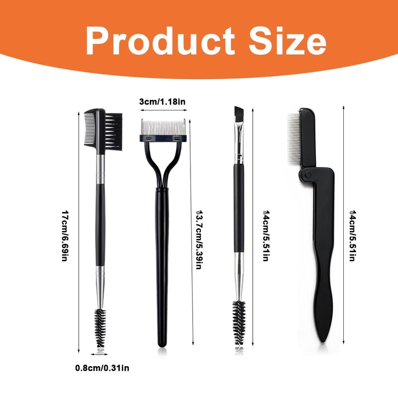 - Package contents: you will get 4 different brushes, including 1 x eyelash separator with metal teeth, 1 x eyelash/eyebrow comb with metal teeth, 1 x double-sided eyelash comb and eyebrow brush with spiral brush, 1 x professional angled eyebrow brush and spiral brush