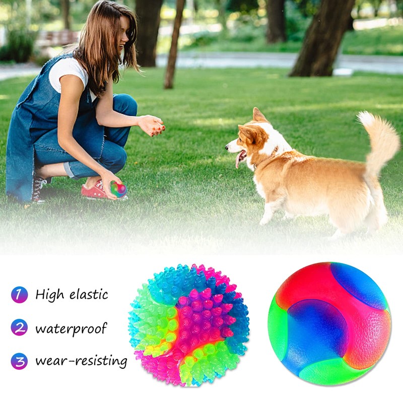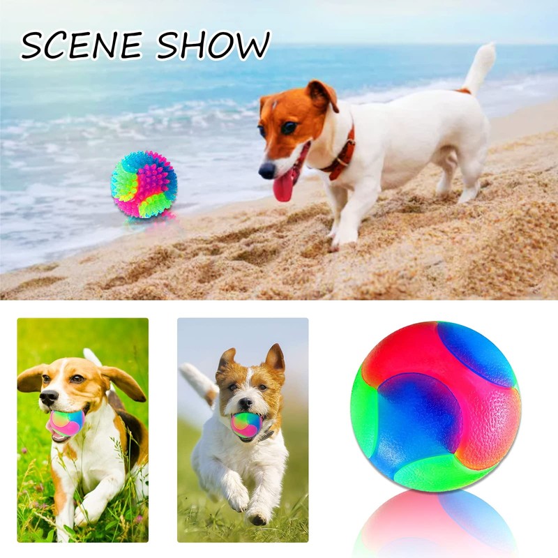 The flashing dog ball toy is made of durable and high elastic TPR material, which is resistant to bite and does not hurt the pet's mouth. It is suitable for puppies, small and medium sized dogs and non-aggressive large dogs, cats, etc.