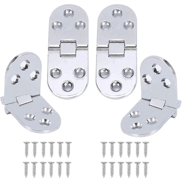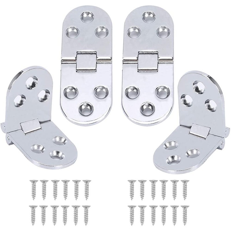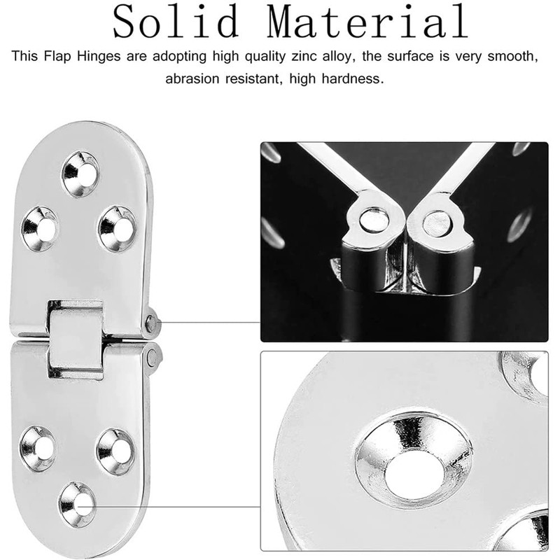 4 Pieces Zinc Alloy Folding Hinge for Folding Table Sewing Machine Table Desk Wardrobe 180° Foldable Hinge Screws Set Home Hardwares, Silver