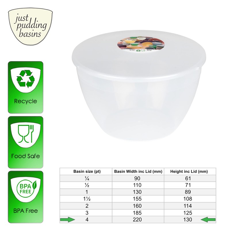 4 Pint Pudding Basin and Lid Plastic Pudding Basin 2.27l (4pt) Large Size Food Safe Steaming Bowls Mixing Bowl Clear