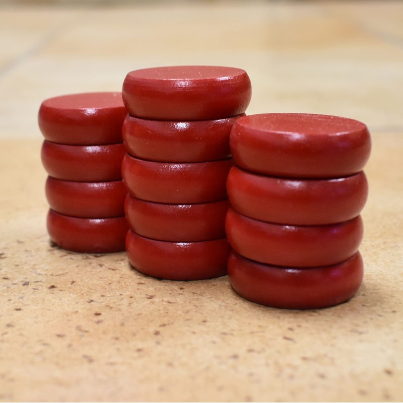 - Includes: 52 large crokinole discs that meet tournament standards in 4 colours. There are 13 discs of each colour (1 extra of each in case you lose one): red, green, white, and walnut stain. Please Note: The discs are flat on both sides which is tournament standard