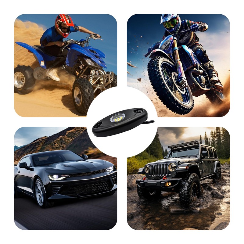 -LED Rock Lights Suitable for a wide range of vehicle types, from standard sedans to RVs and motorcycles. They are not only suitable for vehicles but also ideal for illuminating cabins or even engine compartments.