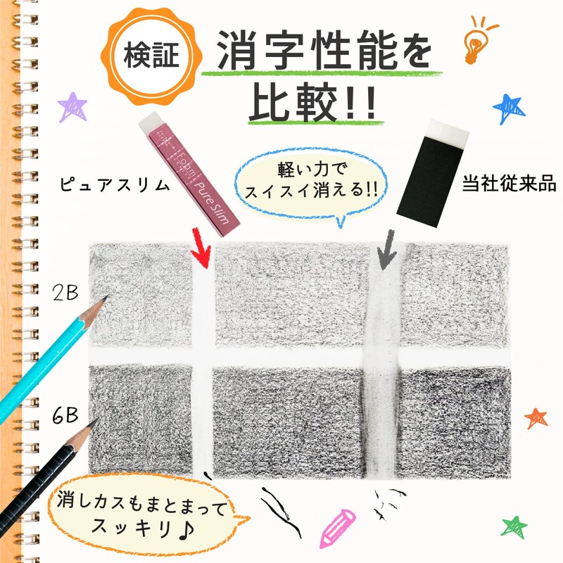 • Feature 1: Slim type that does not add bulk to your pen case and can be erased lightly