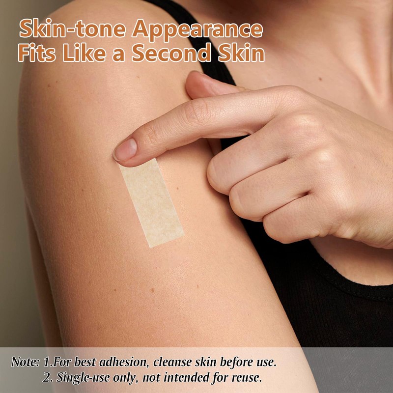 - Hautfarbene Optik: Die natürliche Hautfarbe des Tapes sorgt für eine diskrete Anwendung, die gut zur Haut passt und in sozialen Situationen unauffällig bleibt. Hinweis: Um die beste Haftung zu erzielen, reinigen Sie bitte die Haut vor der Anwendung.