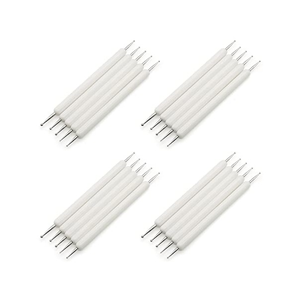 4 Set Embossing Stylus Double End Tracing Dotting Tool, 20 Pcs Ball Embossing Stylus Double End Tracing Dotting Tool for Pottery Clay Craft, Embossing Art (White)