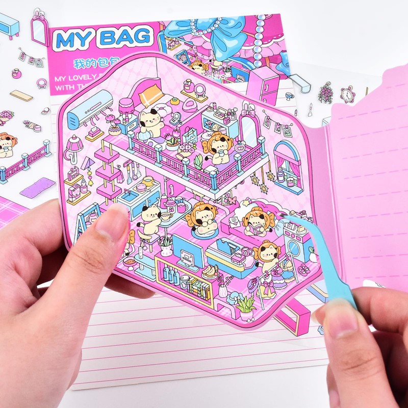 - DIY 3D House Stickers: DIY 3D House Stickers: You will get 4 sets of DIY 3D mini Bear House clamshell scene stickers and tweezers, containing 4 different scenes including hanging bag, clip doll machine, dresser, flower basket, different effects before and after clamshell, very fun and creative.