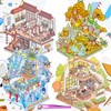 4 Sets DIY Large 3D Animal House Sticker Scenes with Tweezers Make Your Own Dragon Palace Teahouse Temple of Wealth Bookshop Scene Stickers Cute Micro Room Stickers for Relief Stress Pass The Time