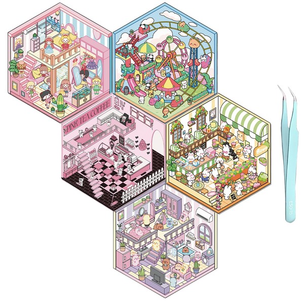 - DIY 3D House Stickers:5 Sets DIY 3D House Stickers has 5 different themes:Capibara House/Cat Cafe/Clothing Store/Amusement Park/Bakery,ect various cute little animals.Package comes with a pair of tweezer and a silicone pad.Please check the theme style before purchasing.