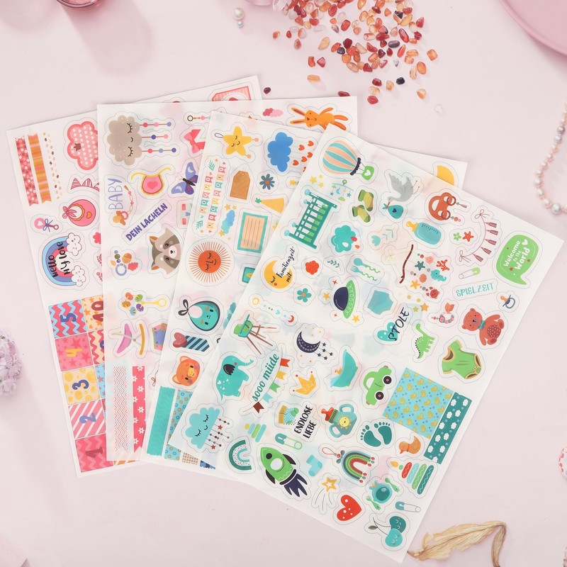 - 【No Repeat Baby Scrapbook Stickers 】Welcome Baby Stickers set includes 4 sheets per pack, totaling over 200 unique stickers. Each sheet is 11.4” tall x 8.3” wide.